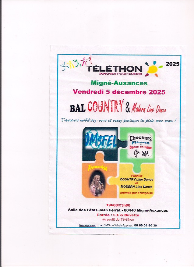 • Vendredi 5 Décembre : Migné Auxance (86) Téléthon de 19 à 23h