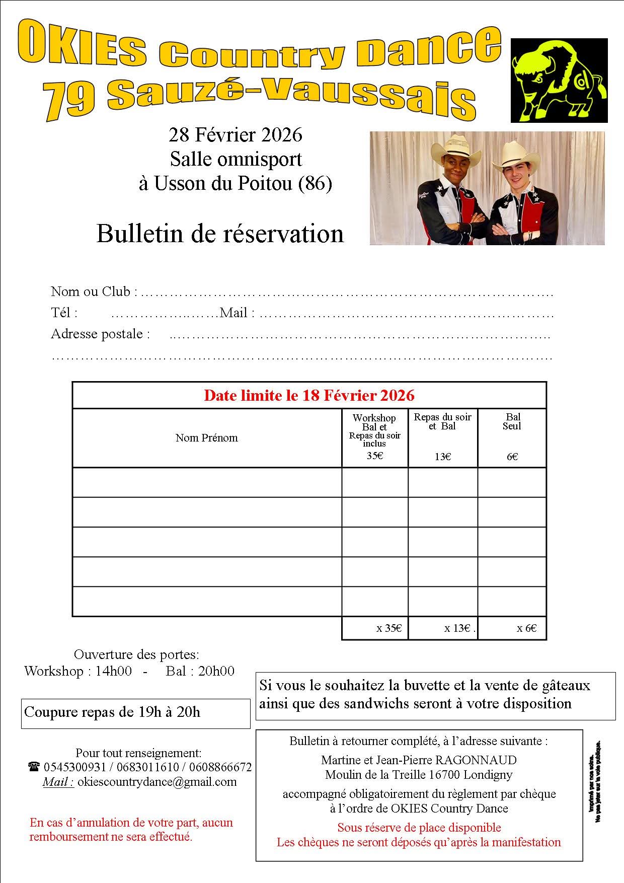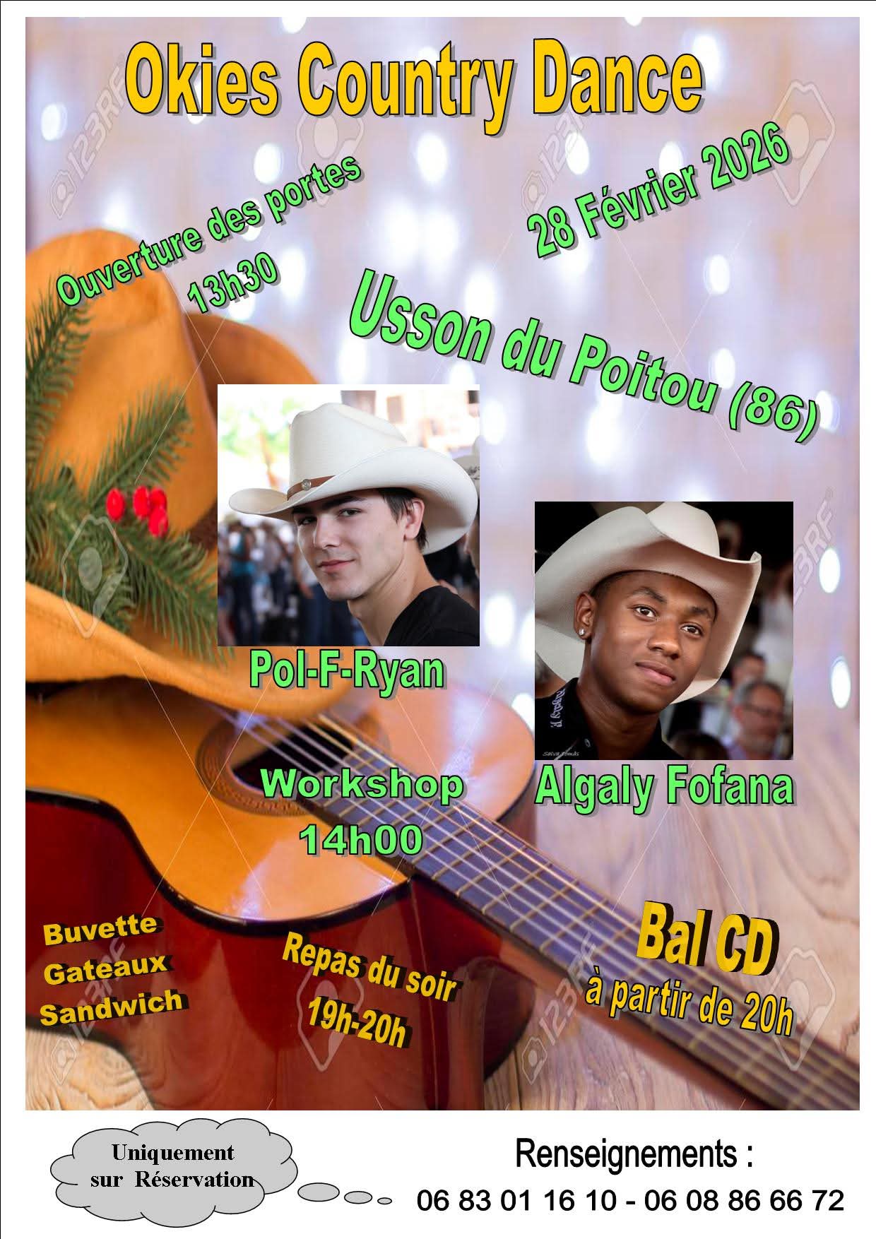 • Samedi 25 Février : Okies Country dance – Usson (86) – Workshop avec Pol-F- RYAN et ALGALY FOFANA et Bal :